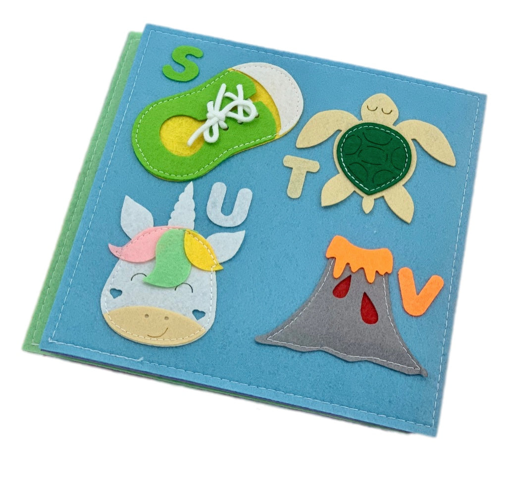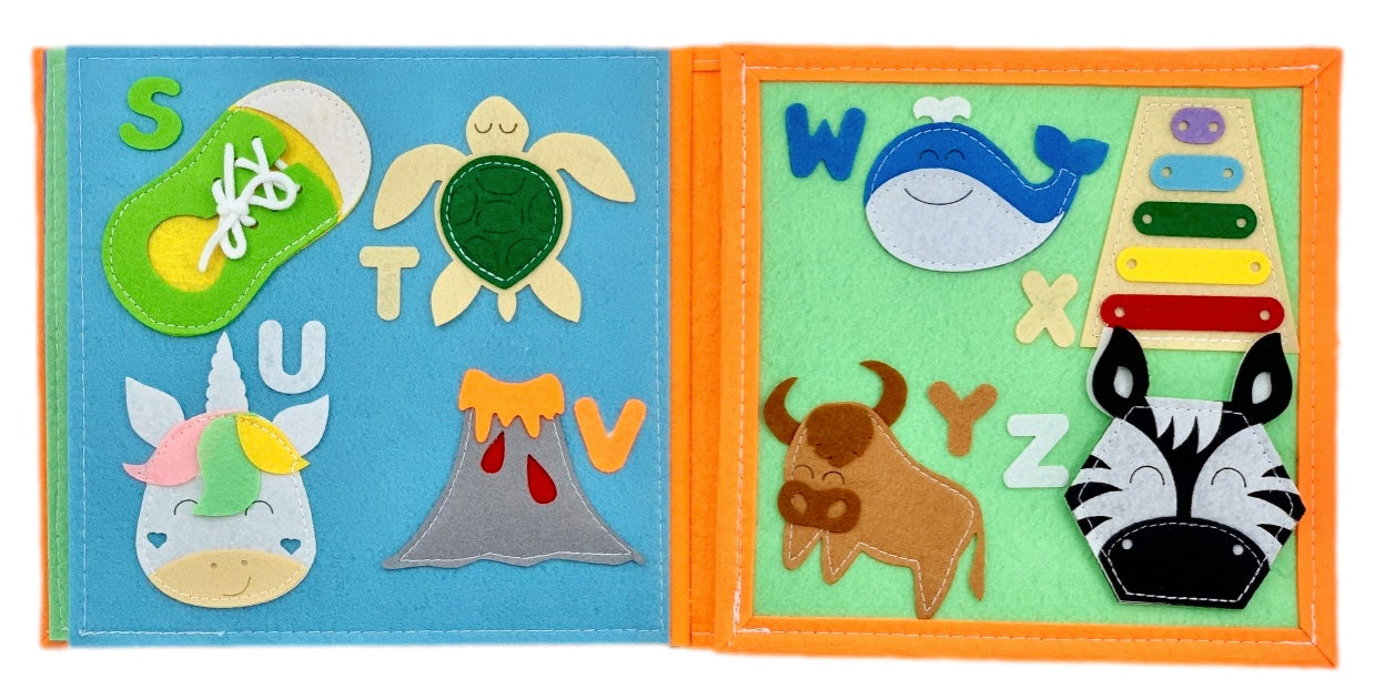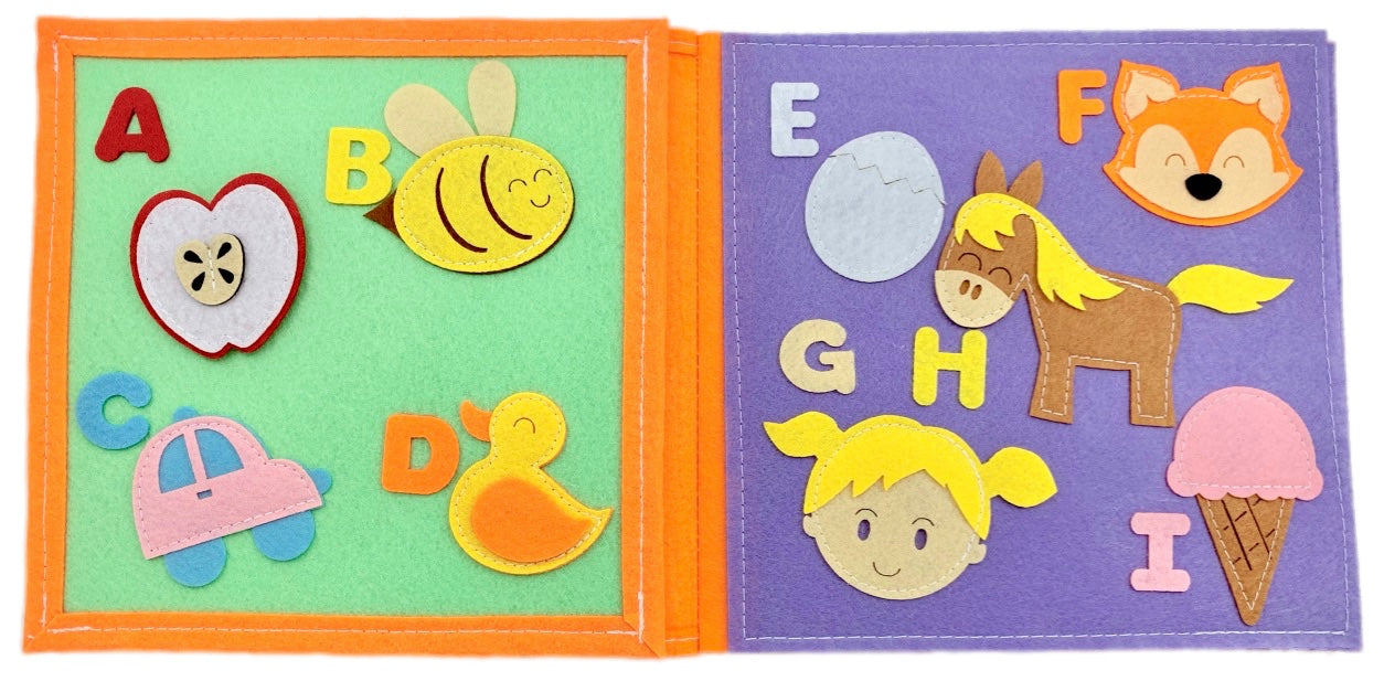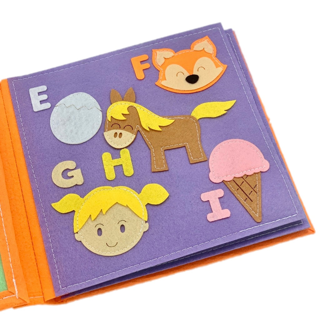 The Alphabet Book features 6 pages and are comprehensively crafted in felt textile material. This book is suitable for toddlers from 2-5 years old. This lovely book contains alphabet letters from A-Z and objects to go with each letter for kids to learn through playing or singing.