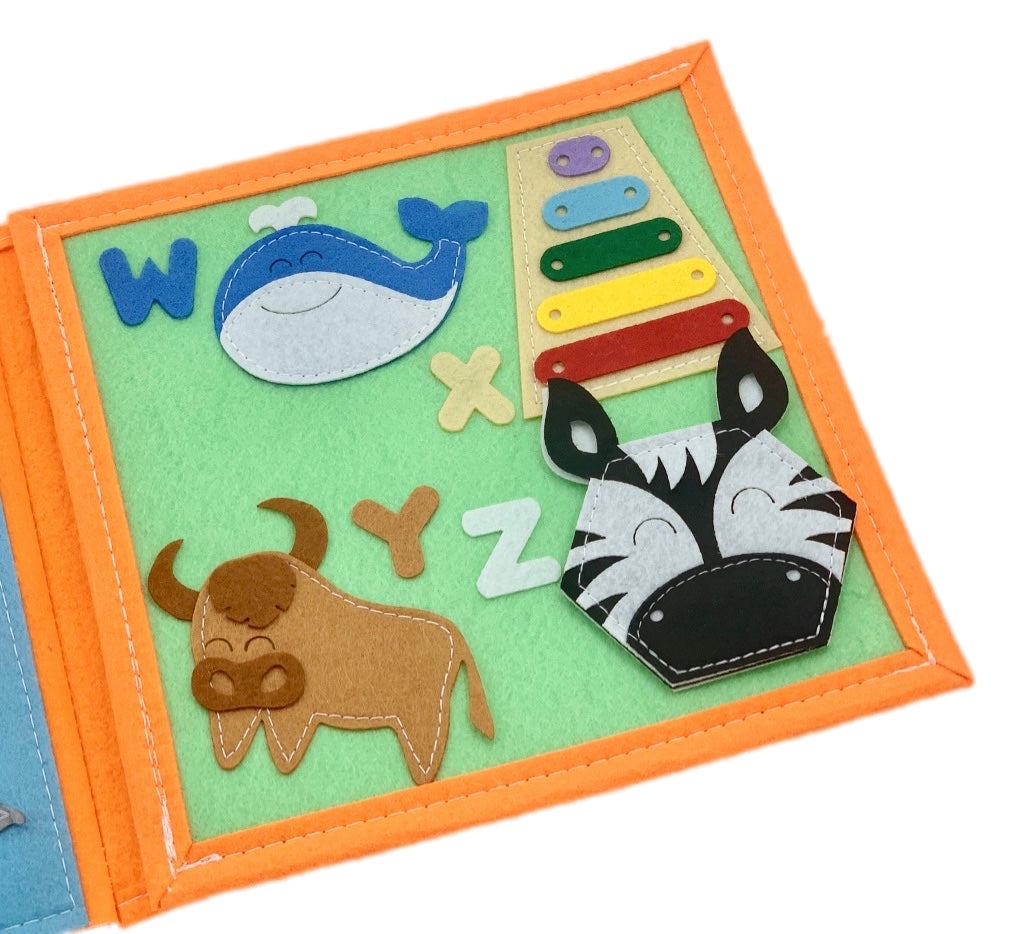 Perfect for the curious mind where children can play and learn at the same time. Our felt activity book will help to keep your little one entertained at the back of the car, at the restaurant and many other places where minimal noise is appreciated.